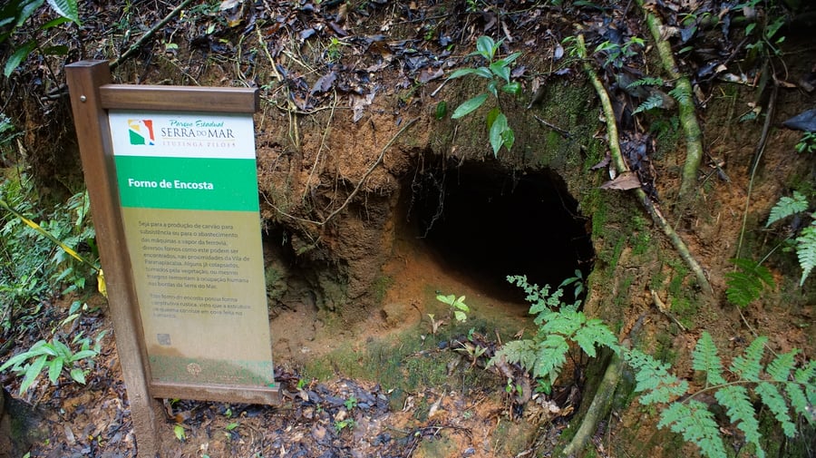 •  Na trilha da Pedra Lisa é possível observar diferentes tipos de estruturas remanescentes de fornos utilizados no século XIX para produção de carvão vegetal a partir do processa mento de madeira,   que era então usado como combustível em fornos siderúrgicos e na indústria da região naquela época. Os fornos eram construídos em locais estratégicos onde havia abundância de madeira e     acesso conveniente para o transporte do carvão produzido. Nesta encontramos três tipos: Forno de encosta, de cova e de caieira.